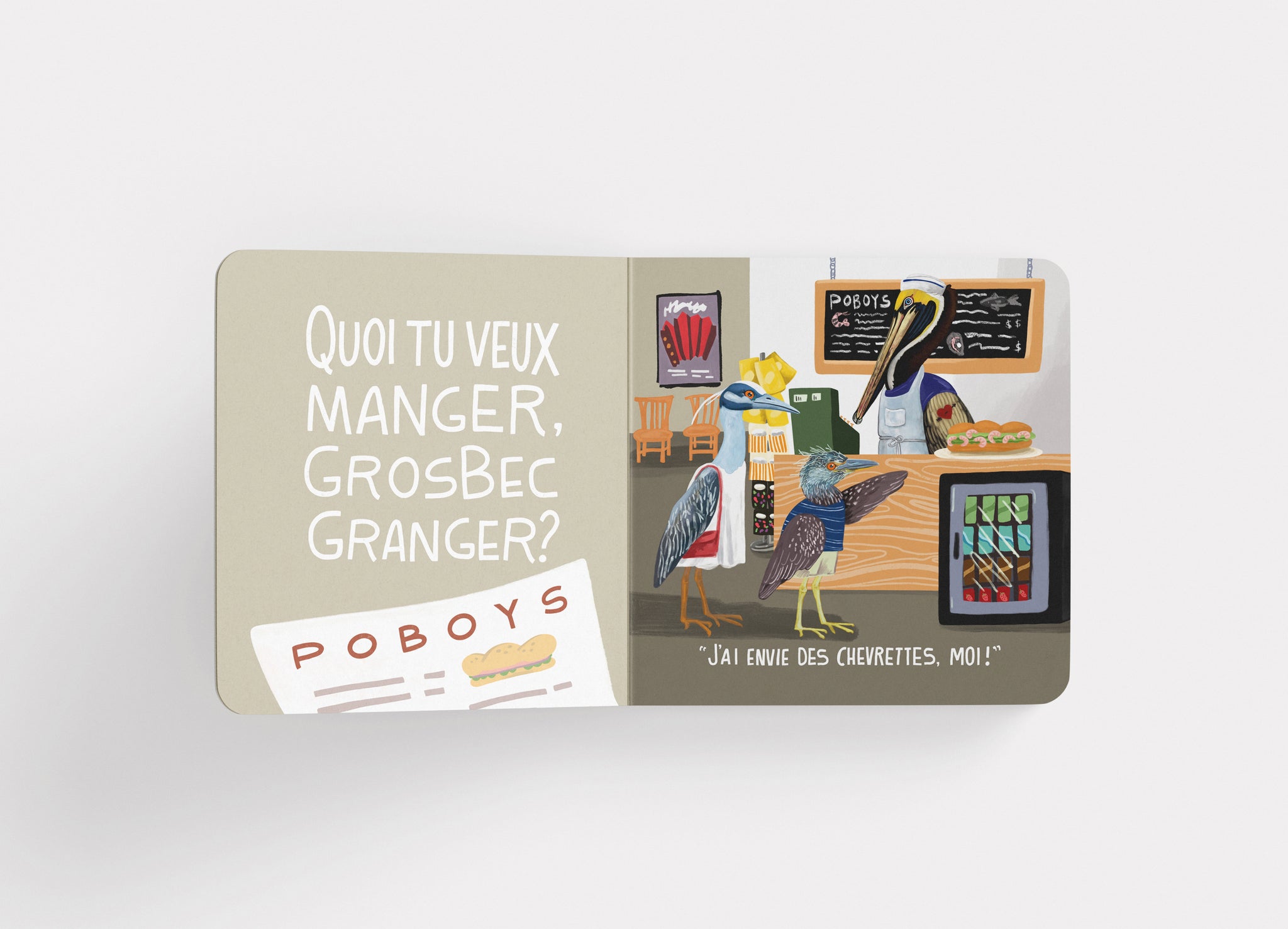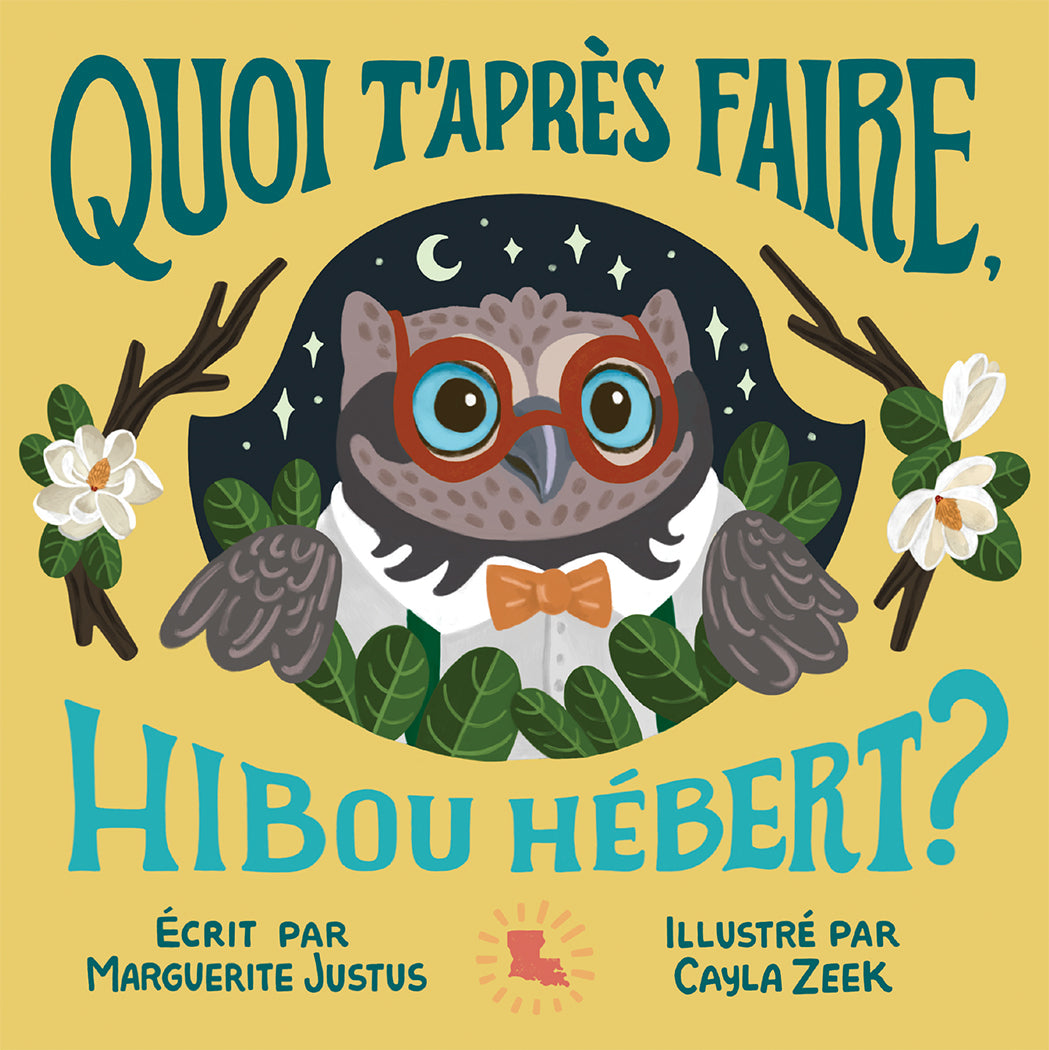 Quoi t’après faire, Hibou Hébert? (Whatcha doin', Owl Hébert?) is a children’s board book in Louisiana French, sometimes called ‘“Cajun French.” With a text based on phrases that adults often say to children, the book is filled with Louisiana artist Cayla Zeek’s vibrant illustrations of the state's flora and fauna.  Using rhyme and alliteration in combination with common Louisiana names, the text seeks to facilitate reading aloud for French learners, whether they are second language learners or Louisianians who are learning to read and write in their native French.